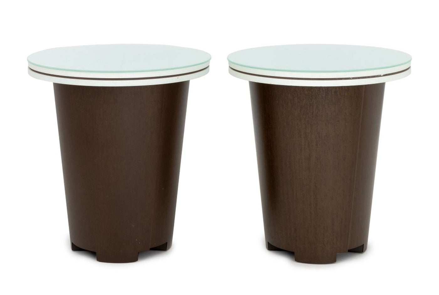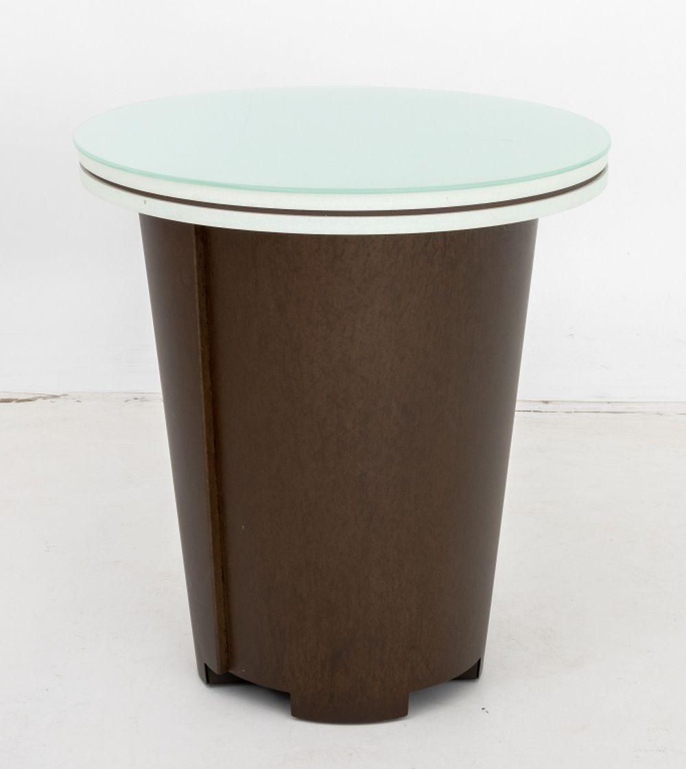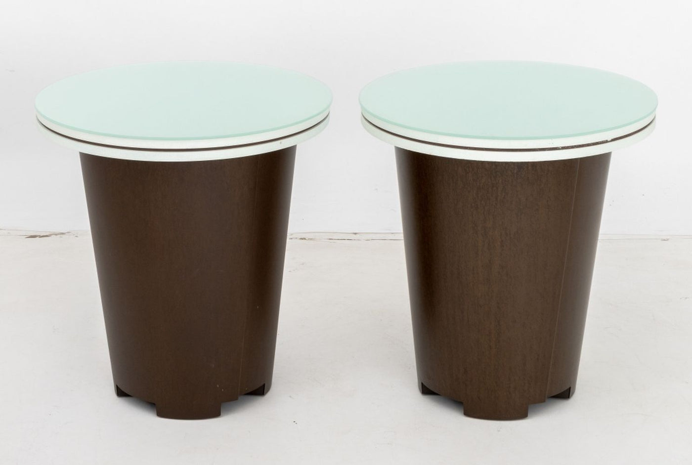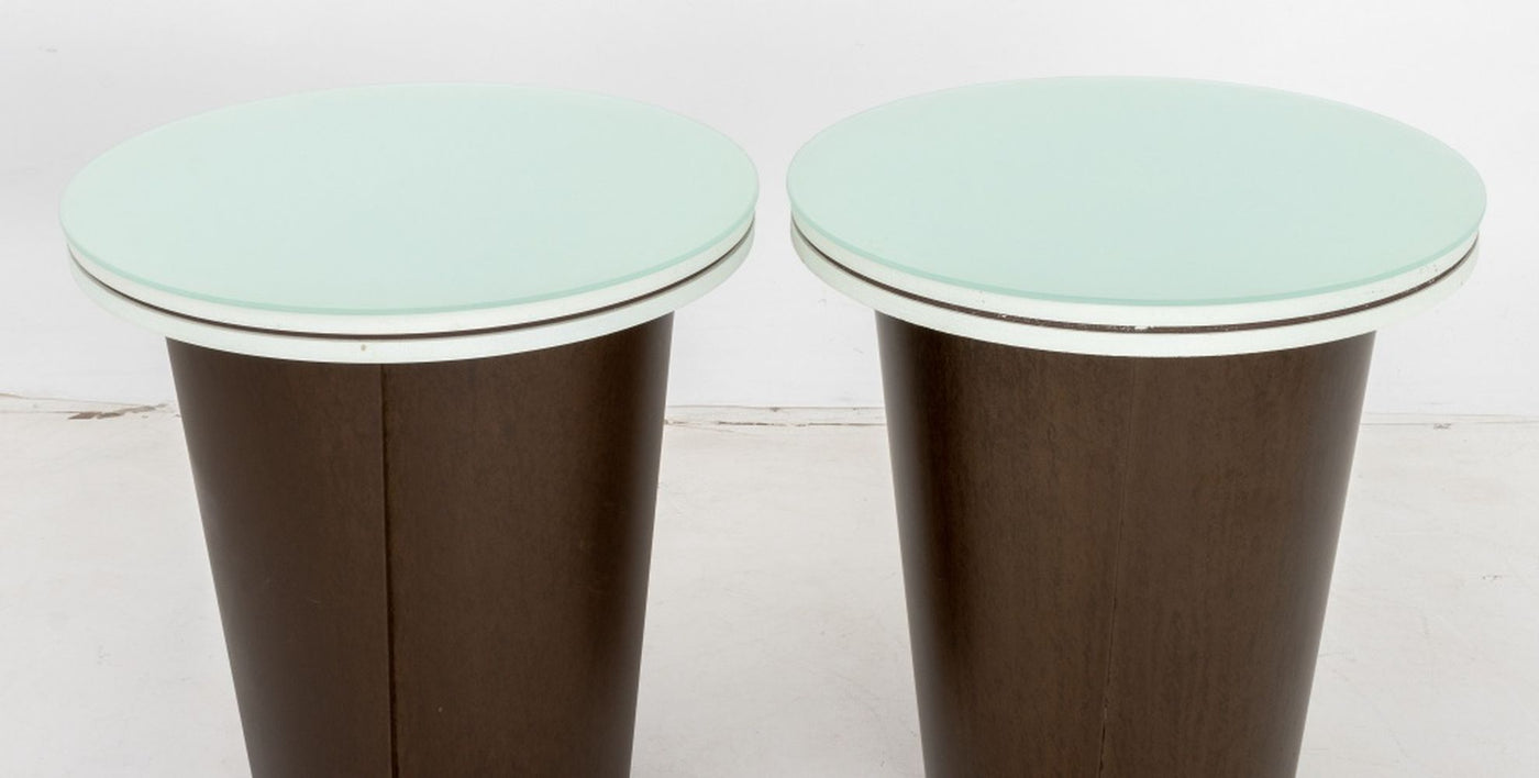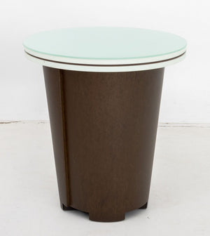 Modern Patinated Metal & Wood Glass Top Tables, 2