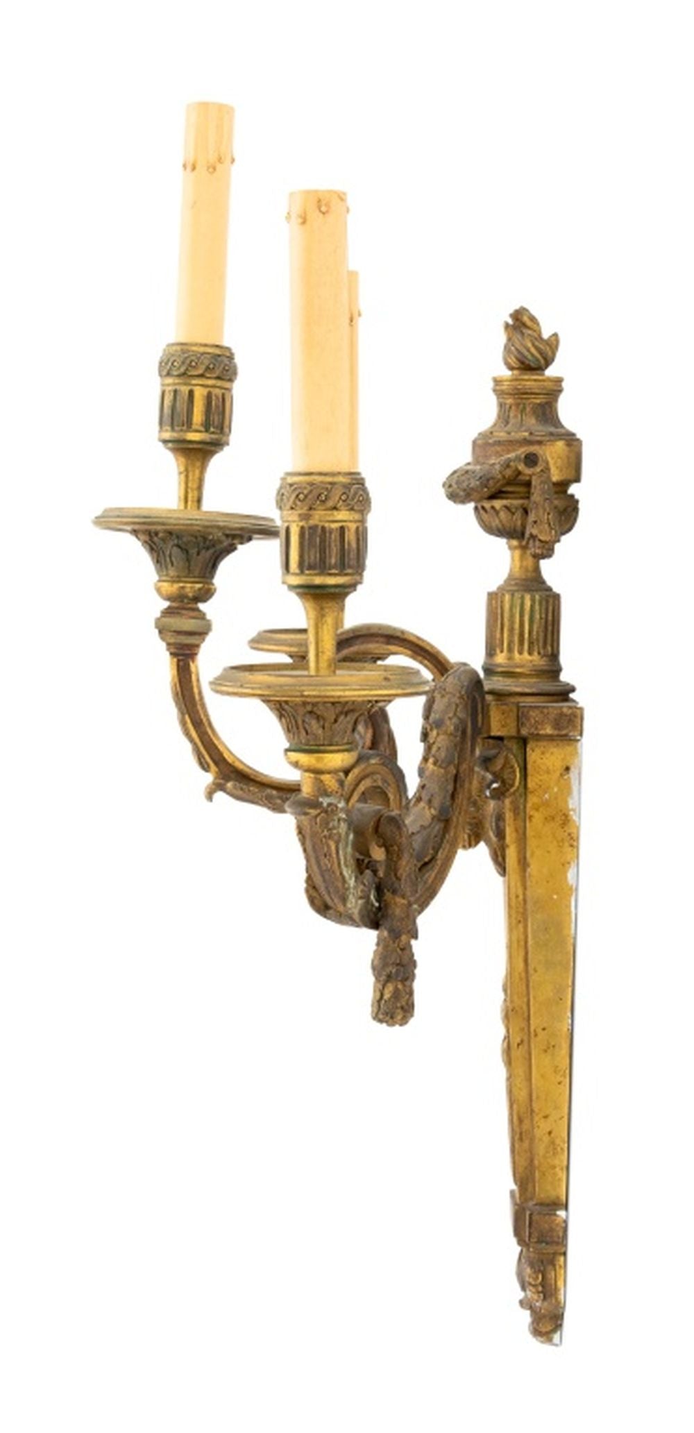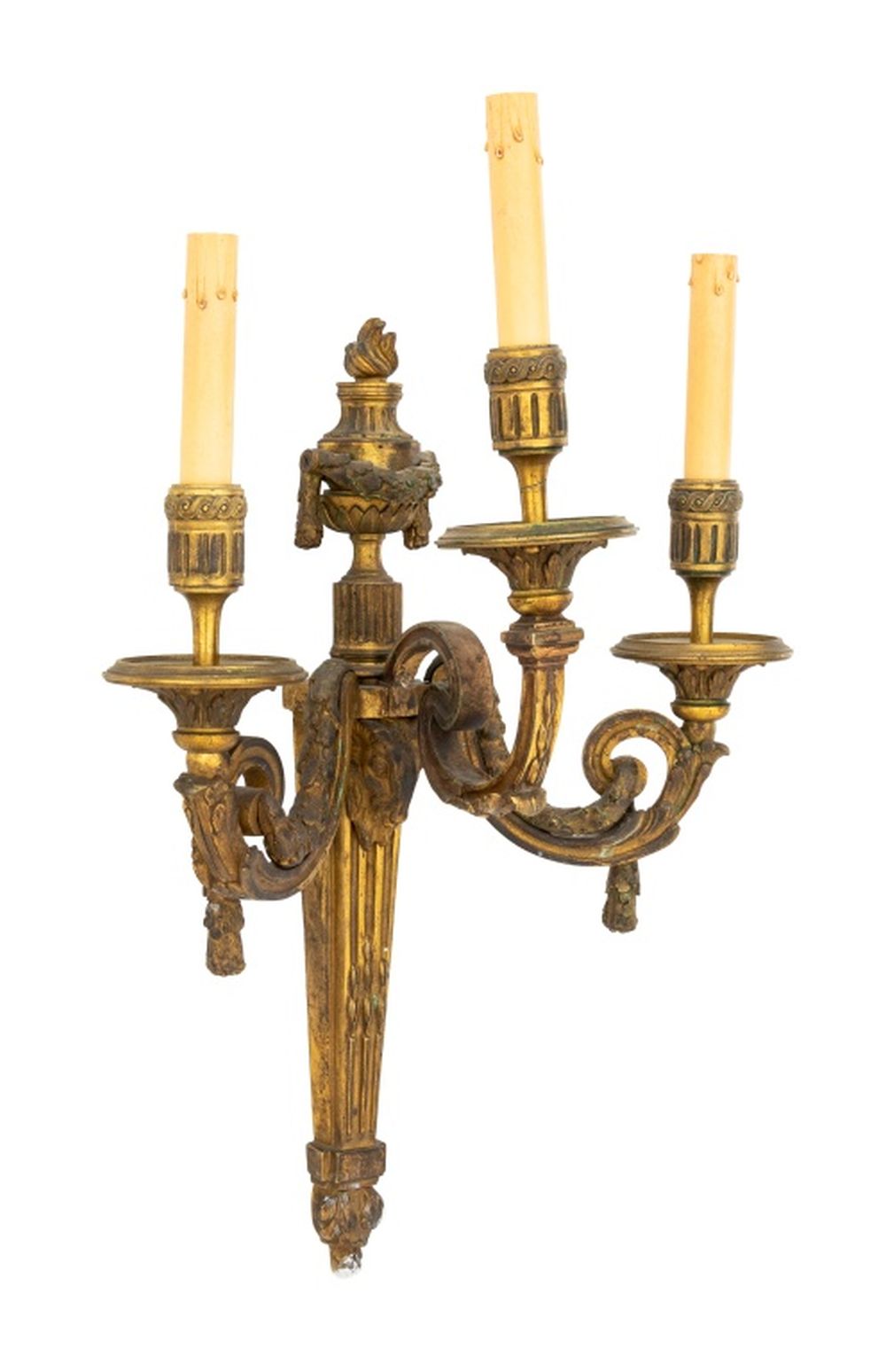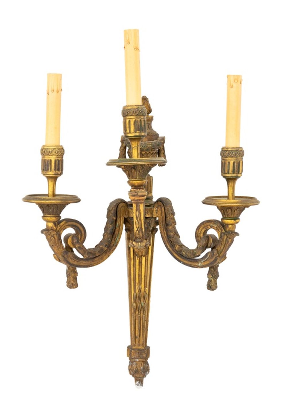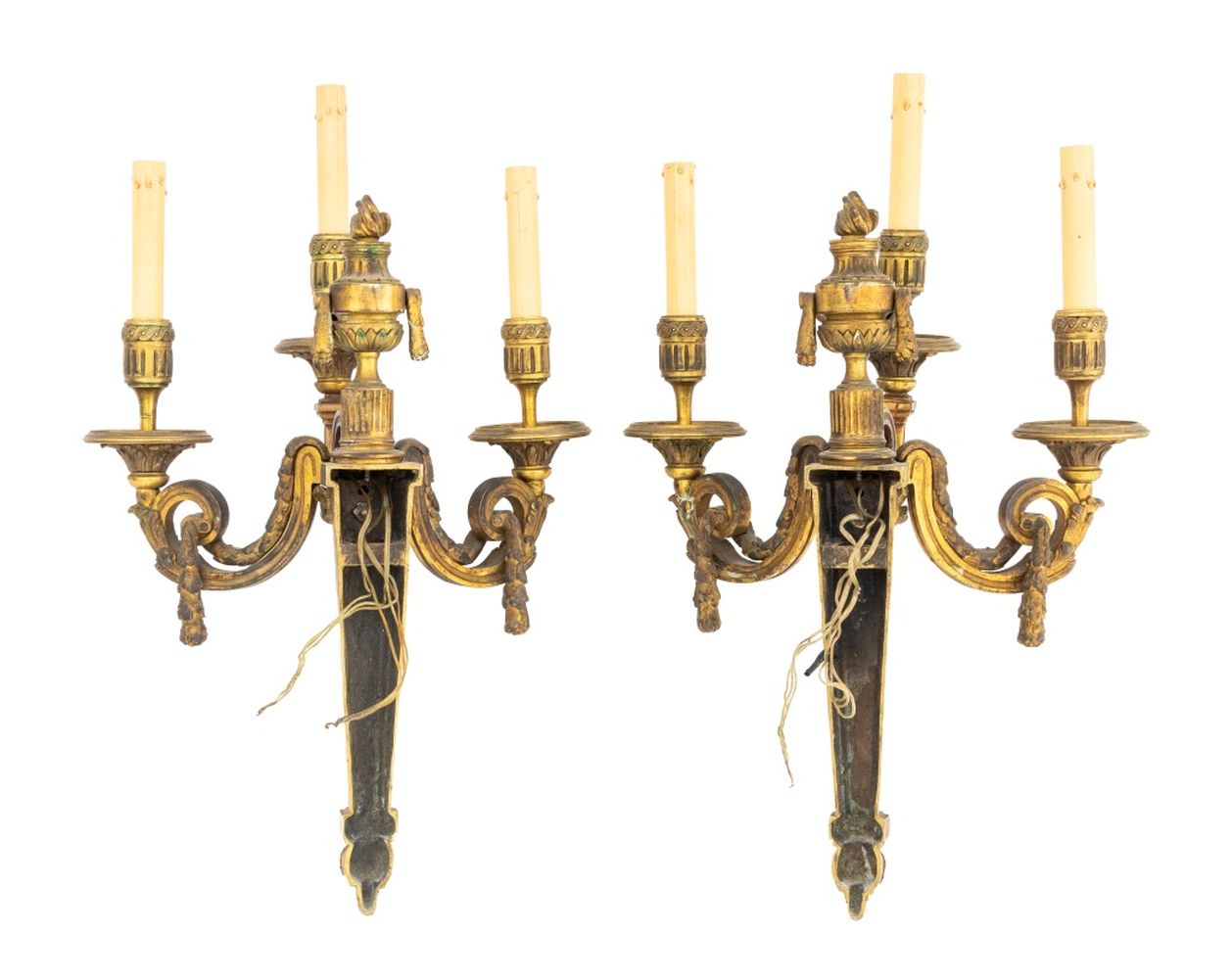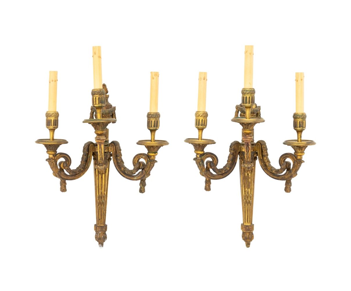 Neoclassical 3-Branch Gilt Bronze Sconces, Pair
