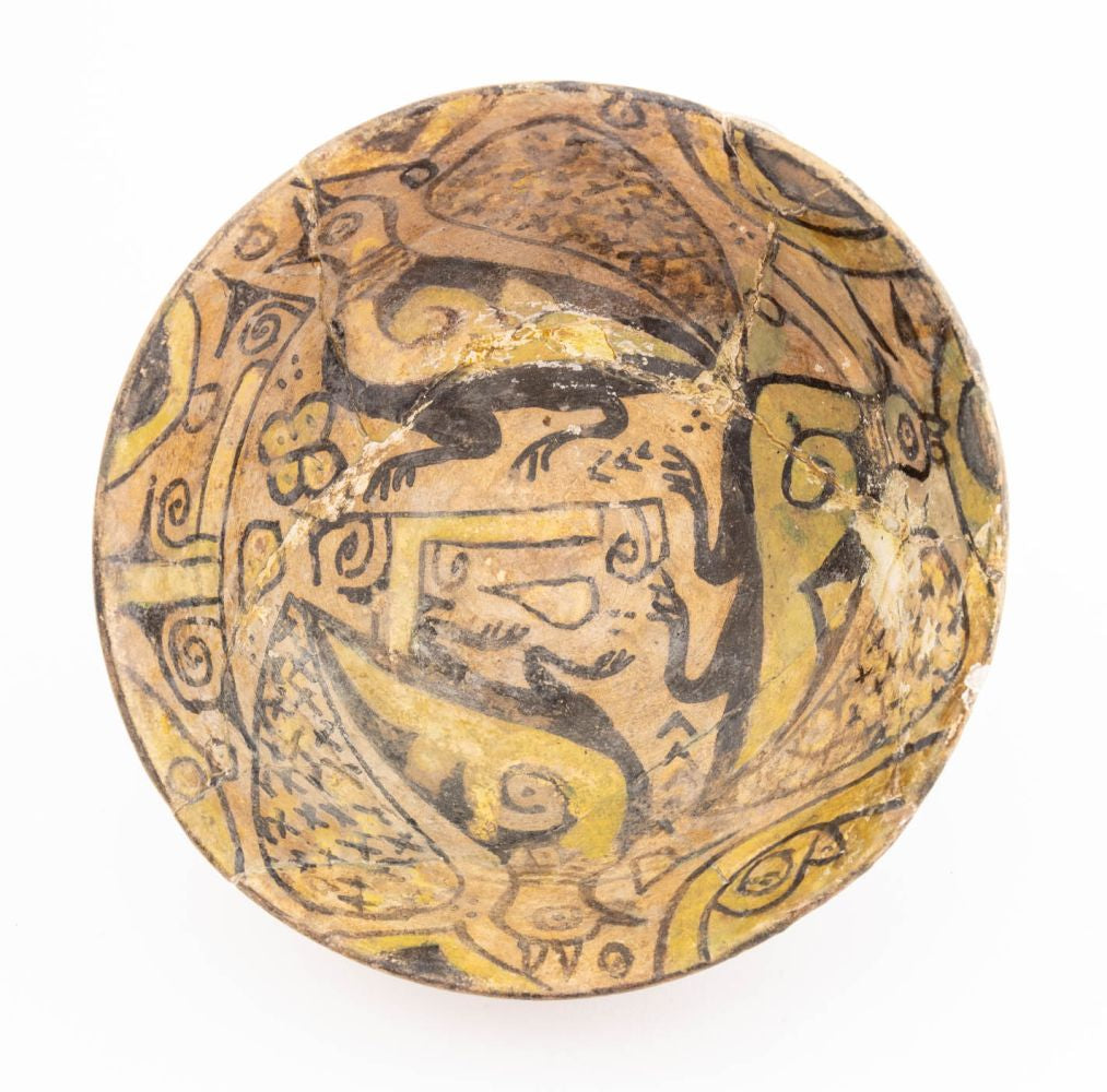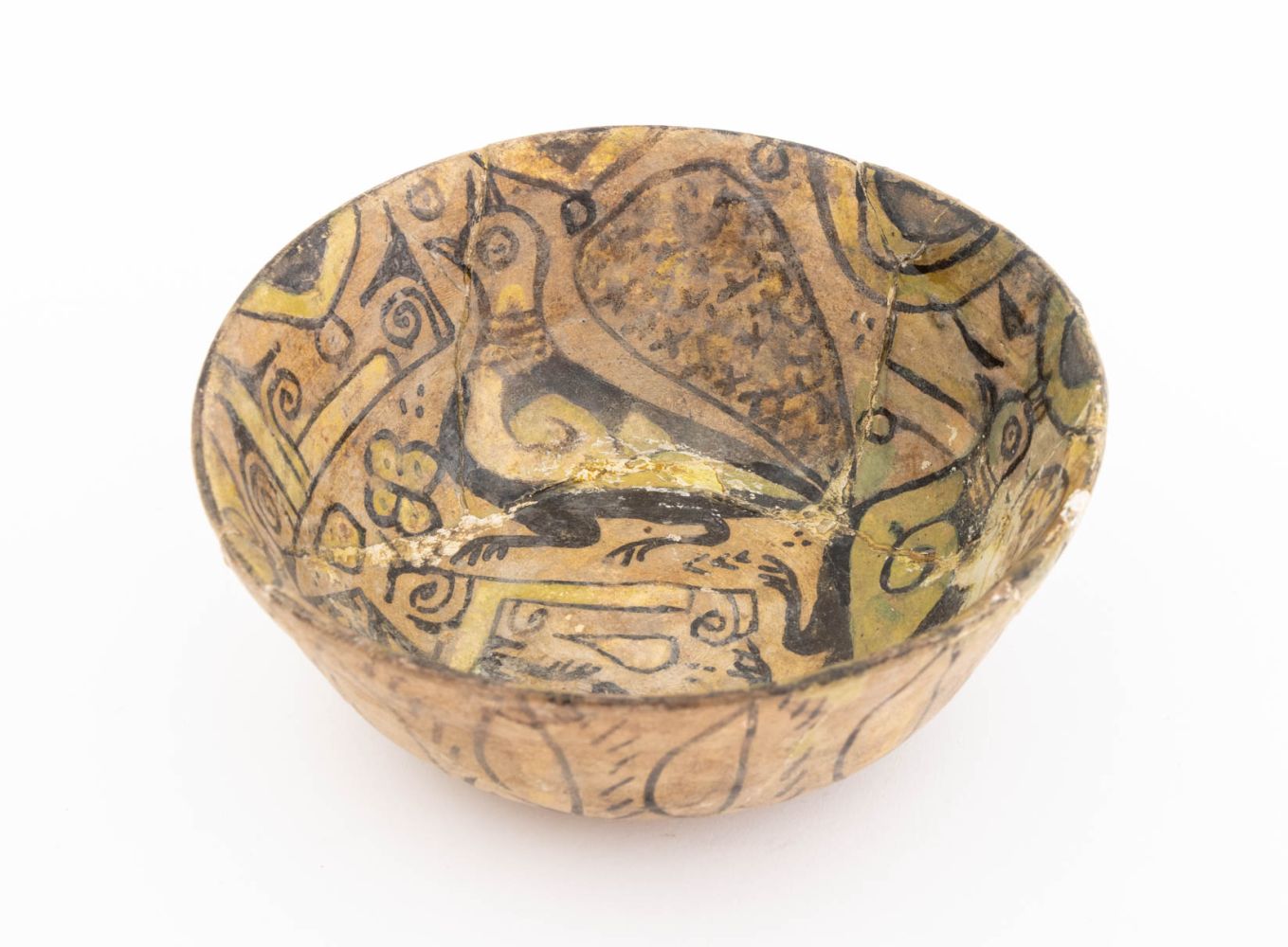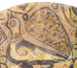 Nishapur Glazed Pottery Bowl, with bird and flower motif.