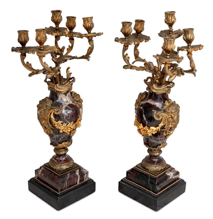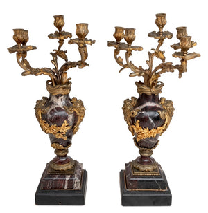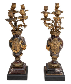 Pair of Louis XV Style Ormolu Mounted Marble Candelabras