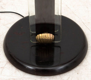 Pietro Chiesa for Fontana Arte Attributed Floor Lamp, circa 1930, glass panels over ebonized wood column, fastened with brass shell clips, with brass disc lampshade.