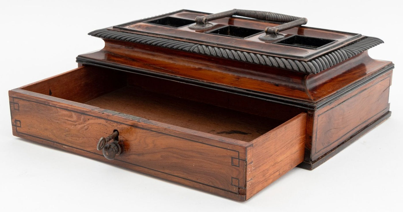 Regency Silver Mounted Yew Inkstand, 1816