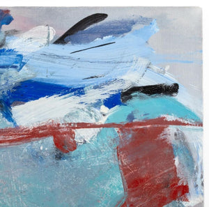 Robert O'Meara (American, 1957-2024), Abstract Composition in Blue, Oil on Canvas, in blue with white and red lines, unsigned, unframed. 31" H x 26" W. Provenance: From a 333 East 75th Street Estate. Keywords: Paintings, Works on Canvas, Abstraction, Abstract Expressionism, AbEx, Polychrome, Blue, Teal, White, Contemporary Art Robert O'Meara (American, 1957-2024), Abstract Composition in Blue, Oil on Canvas, in blue with white and red lines, unsigned, unframed. 31" H x 26" W. Provenance: From a 333 East 75th Street Estate. Keywords: Paintings, Works on Canvas, Abstraction, Abstract Expressionism, AbEx, Polychrome, Blue, Teal, White, Contemporary Art