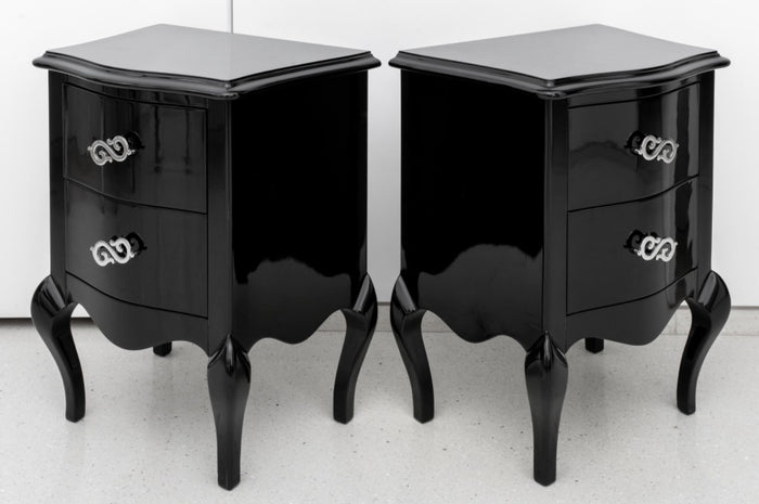 Rococo Revival Black Lacquered Nightstand, Pair