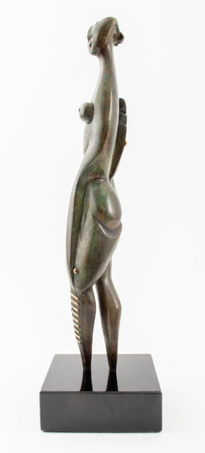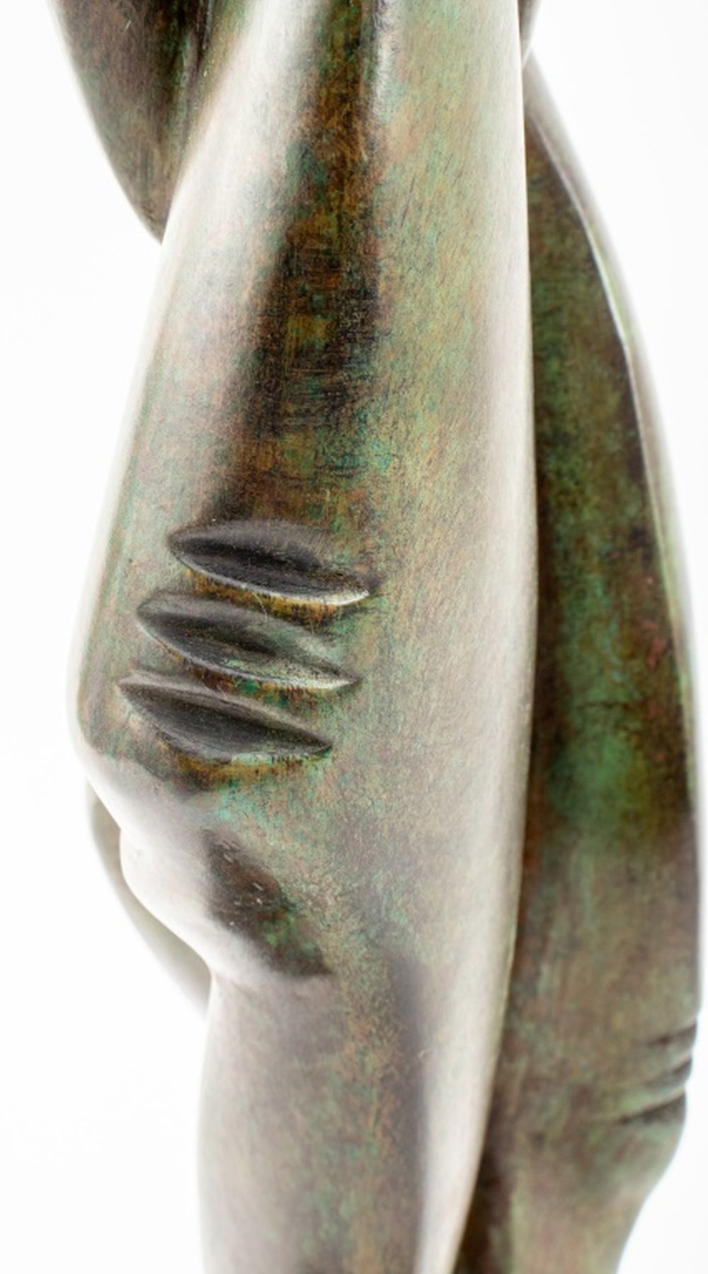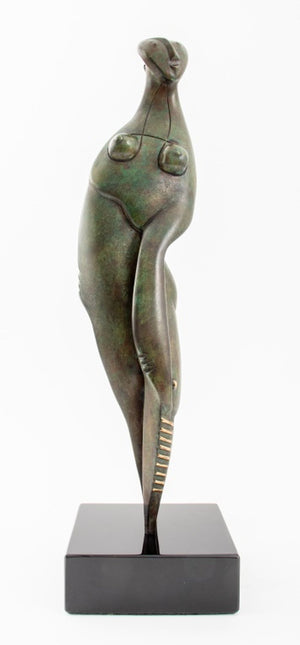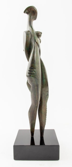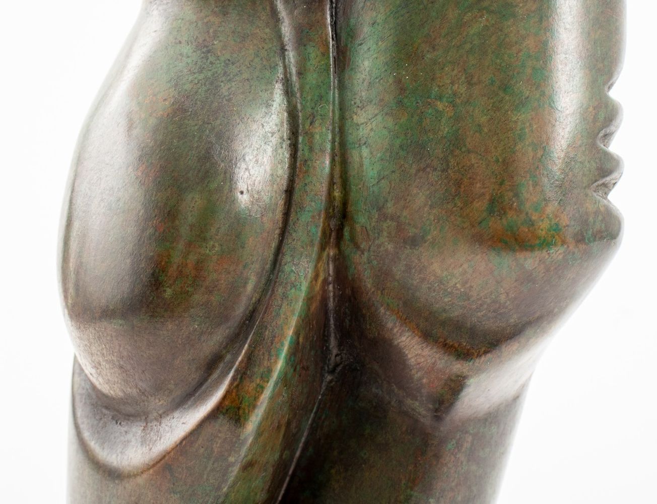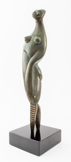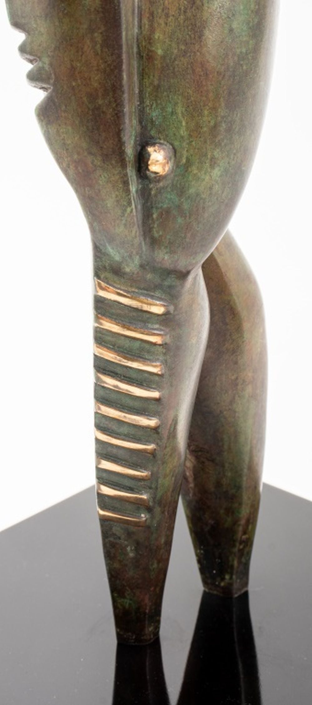 Ronald K. Parker (American, b. 1939) "Life" Verdigris Patinated Bronze Sculpture, 1999, signed "Parker" and marked "c 99 29/99" to leg. 18" H x 5.25" W x 5.25" D.Provenance: From the collection of the publisher. Keywords: Statue, Modern, Abstract, Abstraction, Female figure, Figural, Woman, Tabletop sculpture, Contemporary Art, Decorative Arts