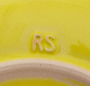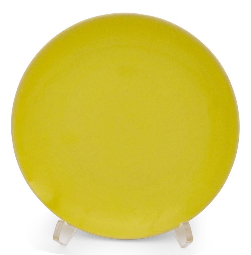 Rupert Spira (English, b. 1960) Set of Eight Yellow Glazed Stoneware Salad Plates, marked "RS" to the underside. 7.5" Diameter. Provenance: Property from an Upper East Side Townhouse. Keywords: Ceramics, Art Pottery, Studio Pottery, Tableware, Dinnerware, Dining, British, Glazing, Handmade, Minimalist, Minimalism, Service, Serving, Decorative Arts