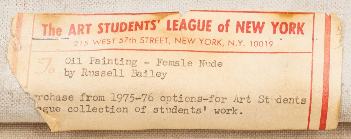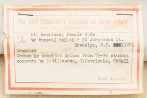 Russell Bailey Reclining Female Nude Oil on Canvas