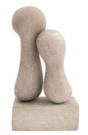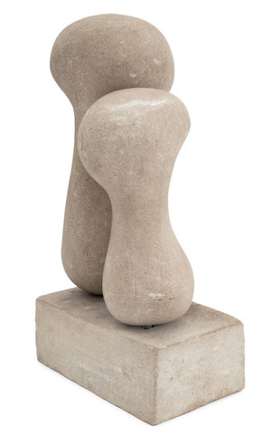 Signed Modern Abstract Composite Stone Sculpture, 1967, two stylized figural forms on rectangular base, signed in Hebrew "Chaim" and dated to base. 18.25" H x 10" W x 6.5" D. Provenance: From an East 72nd Street Estate. Keywords: Statue, Freeform, Abstraction, Israeli Modern Art, Figures, Figurative, Modernist, Modernism, Post-War and Contemporary Art