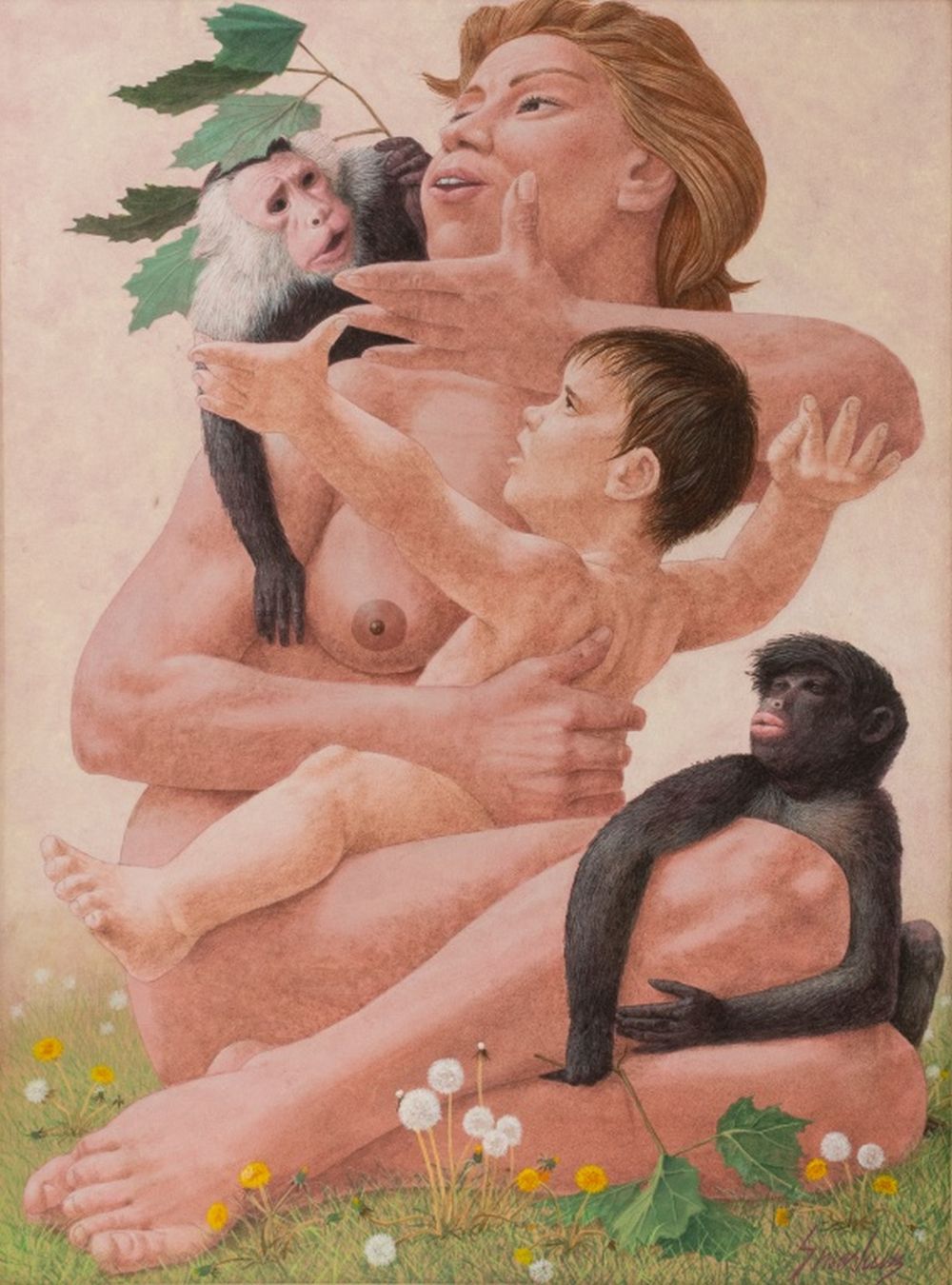 Vincent Smarkusz Mother, Child & Monkeys Tempera