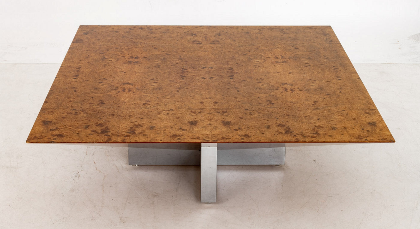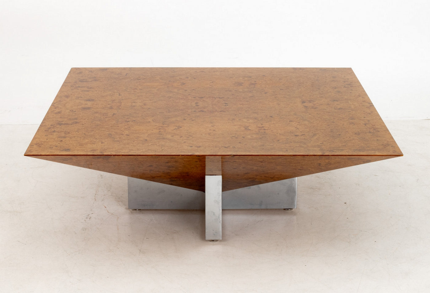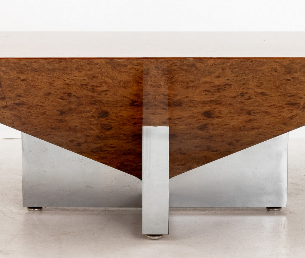 Vladimir Kagan Attr. Burlwood & Chrome Low Table