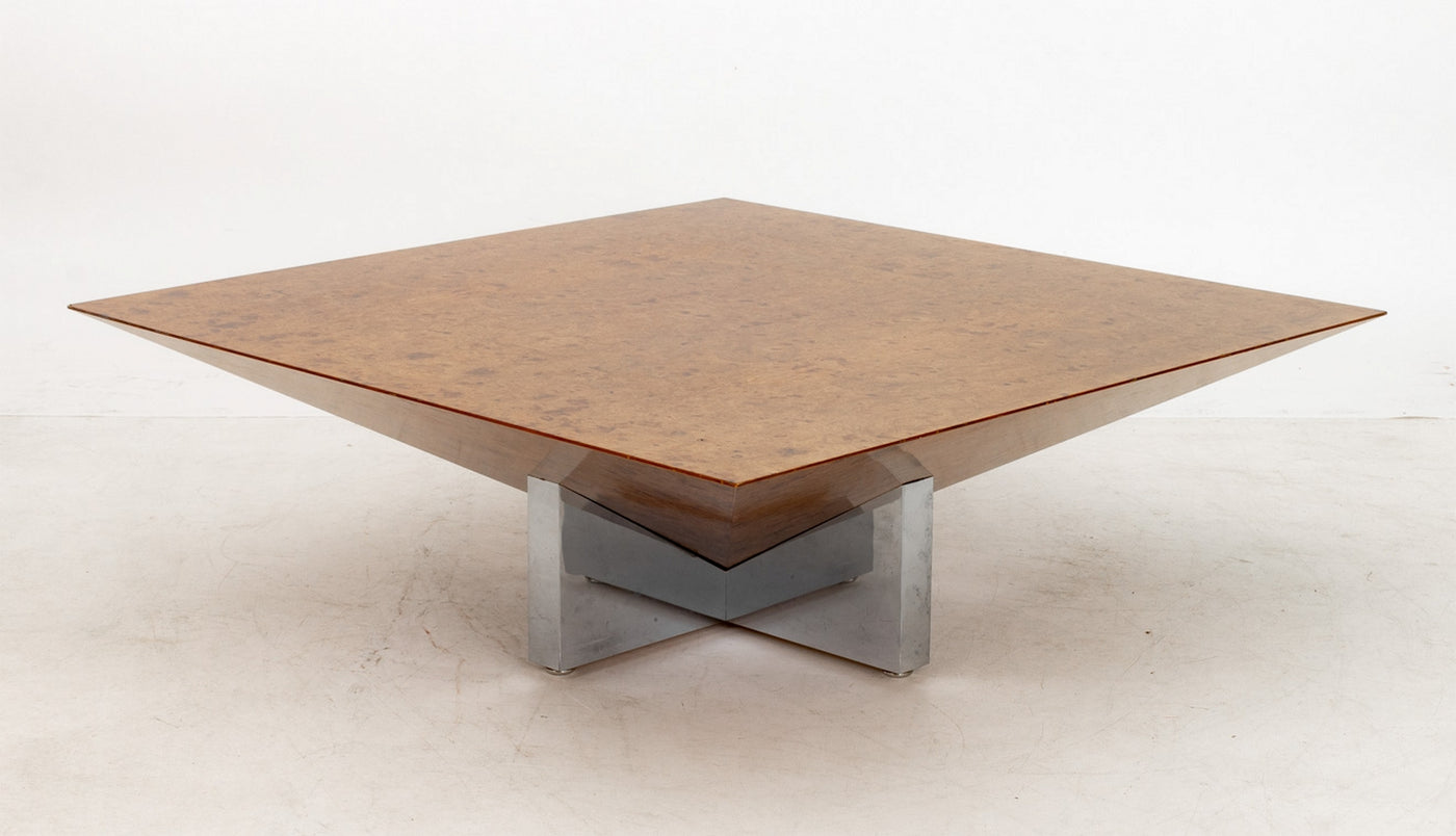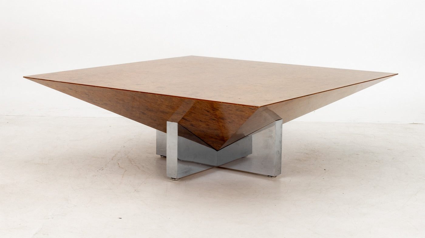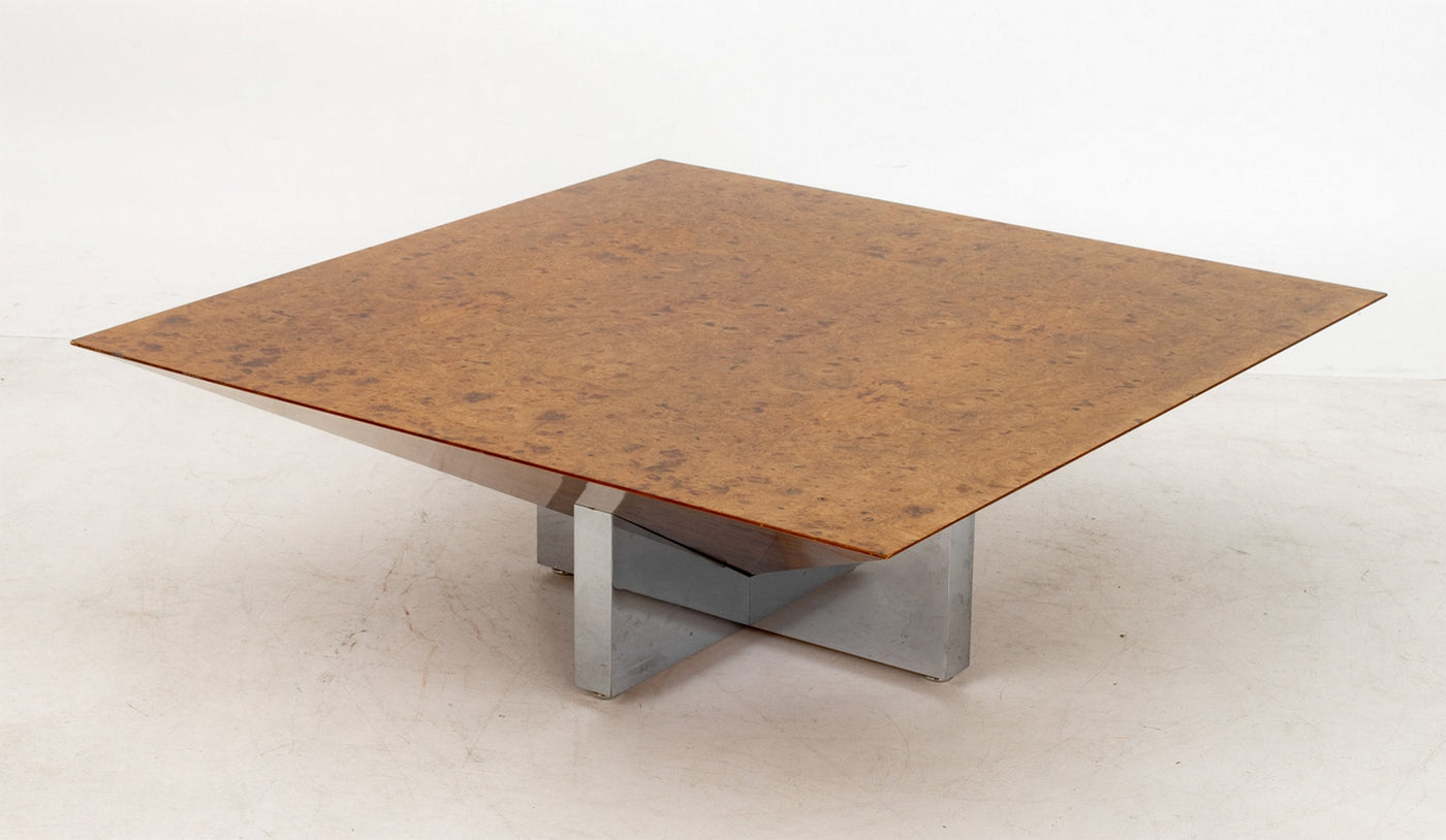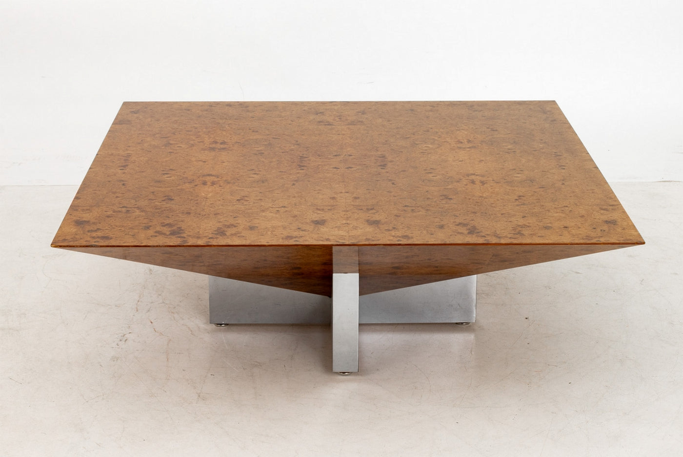 Vladimir Kagan Attr. Burlwood & Chrome Low Table